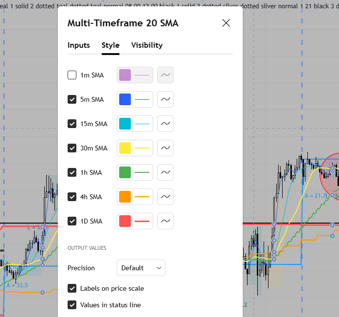 - Displays the 20 SMA from multiple higher timeframes on one chart